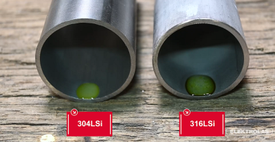 Met het blote oog is het verschil in de twee rvs soorten niet te zien. Maar het verschil zit hem in de aanwezigheid van molybdeen in 316L. Met een simpele test weet je direct of het RVS molybdeen bevat.