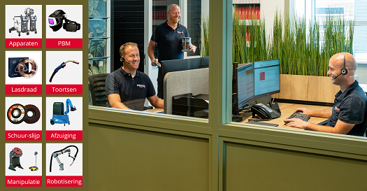Elektrolas is één aanspreekpunt voor alle betrokkenen in het lasproces en we hebben alle kennis en middelen op het gebied van lassen in eigen huis. Vanuit Waalwijk helpen wij bedrijven in Nederland en België met onze totaalaanpak. We verkopen en verhuren lasbenodigdheden, waarborgen kwaliteit, keuren en onderhouden lasapparatuur, leiden personeel op en automatiseren processen. De onderdelen van onze totaalaanpak bundelen we in een krachtige Schijf van Vijf: vijf diensten die elkaar versterken en die onmisbaar zijn voor elk productiebedrijf met een laswerkplaats.