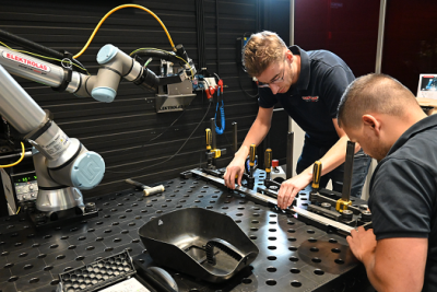 Onze lastechneuten zijn enthousiast aan het programmeren en maken testlassen om een passende oplossing te realiseren voor de klant.
