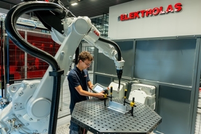 Over een maand gaan we hem leveren. Onze eerste ABB robot oplossing. De laatste proeflassen worden gelegd. Aan de laskwaliteit van dit aluminium product worden strenge eisen gesteld.